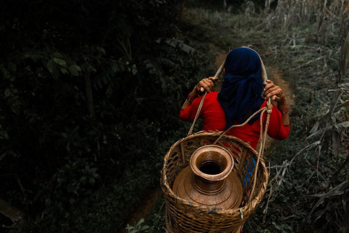So, like normal, Bal Kumari began picking her way down the path. Her gagri—a traditional jug that Nepali women use to collect water—rested on her back, supported by the tumpline that crossed the top of her head. She watched her feet, occasionally looking ahead.