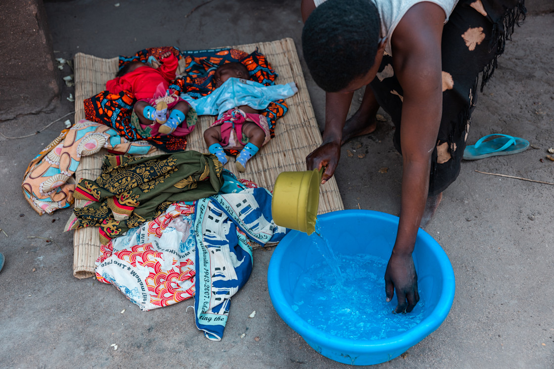 With two newborns in their home, the need for water only increased. They didn’t have disposable diapers, which means the twins’ cloth nappies — five per baby per day — needed frequent washing. There were no baby wipes to keep them clean between changes, which meant Tamanda and Tamara needed three baths per day. Each.